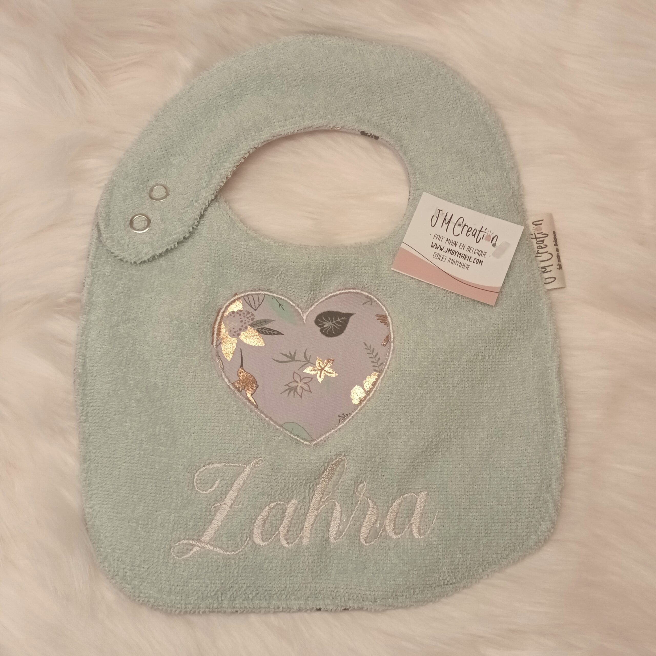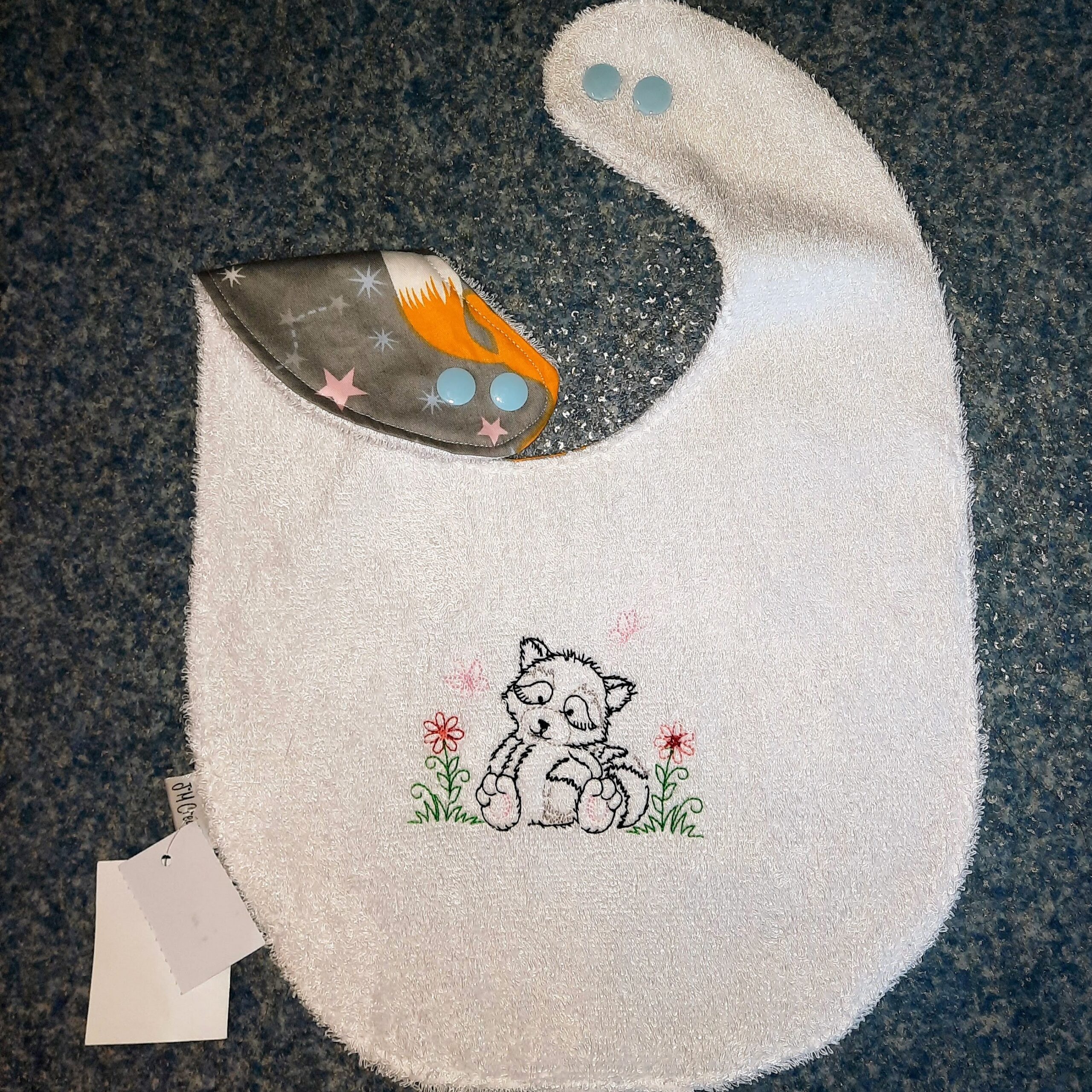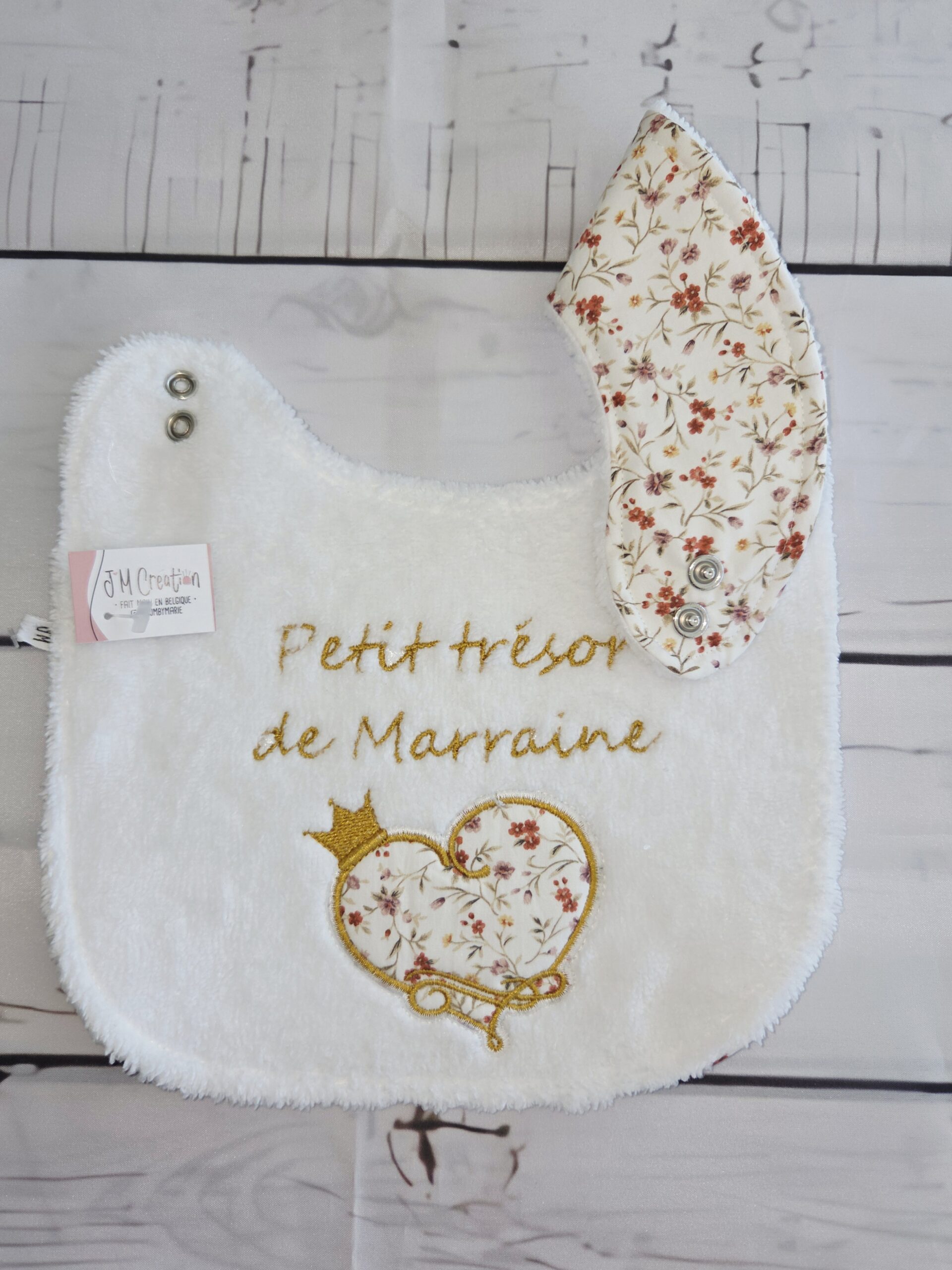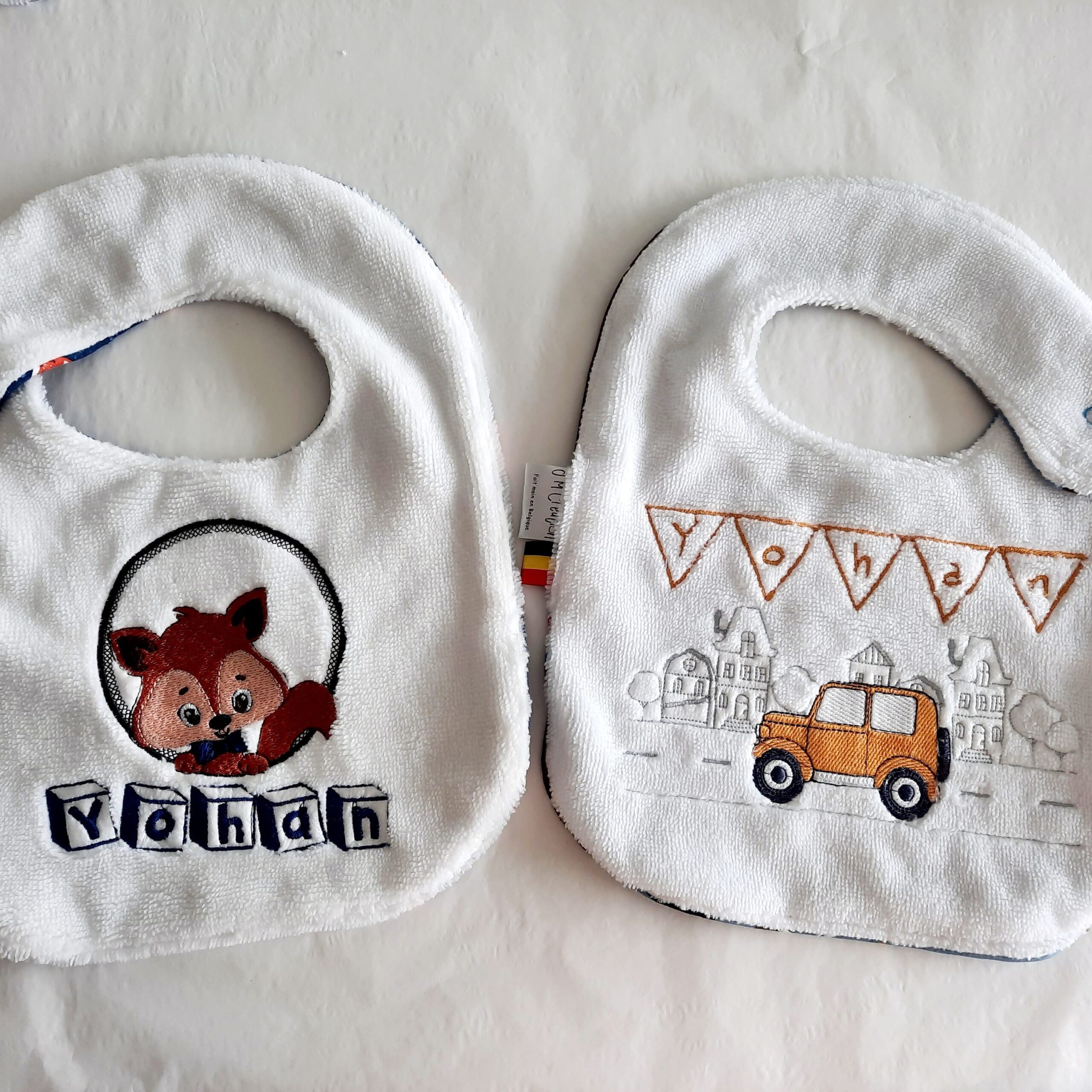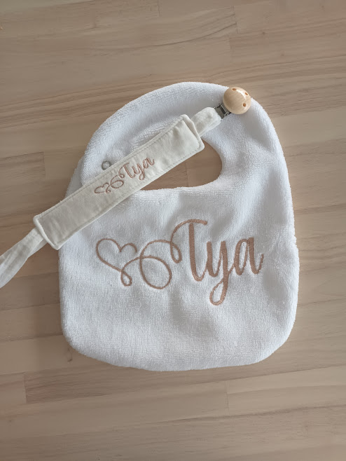 Le choix des tissus se fait directement dans l’album des tissus en stock, afin de créer un bavoir qui vous ressemble et accompagne bébé au quotidien.
