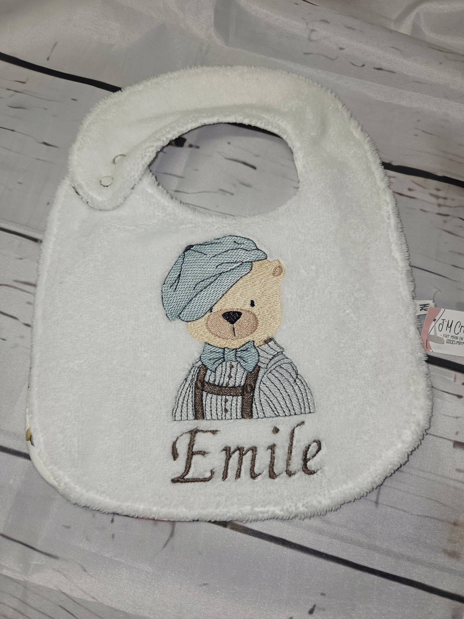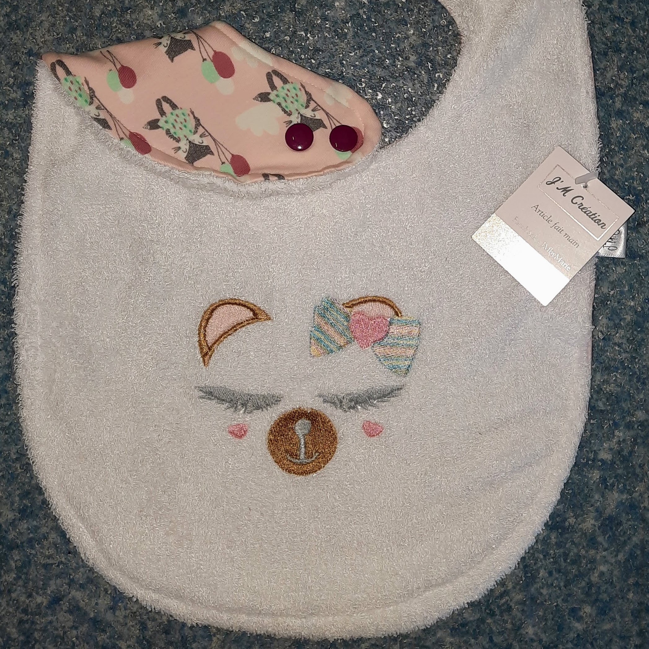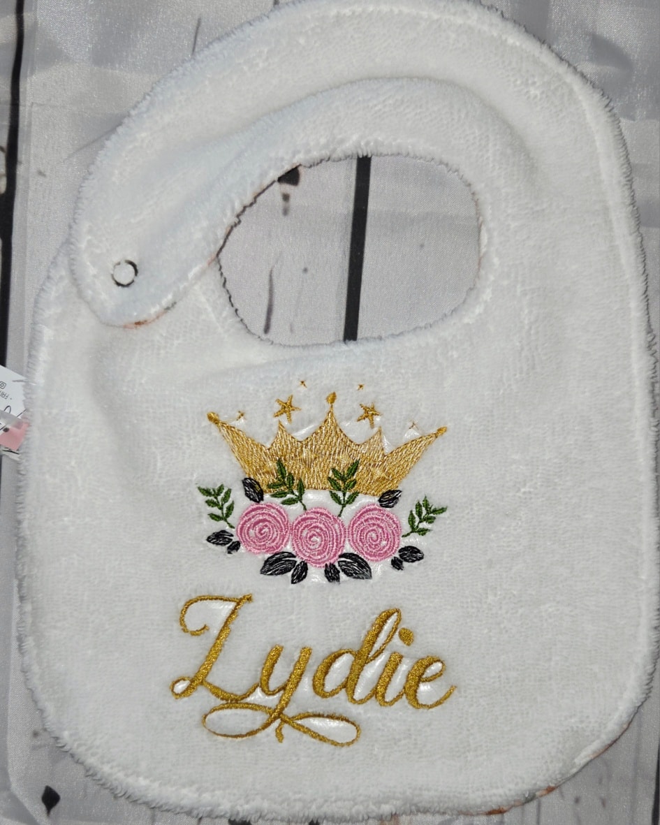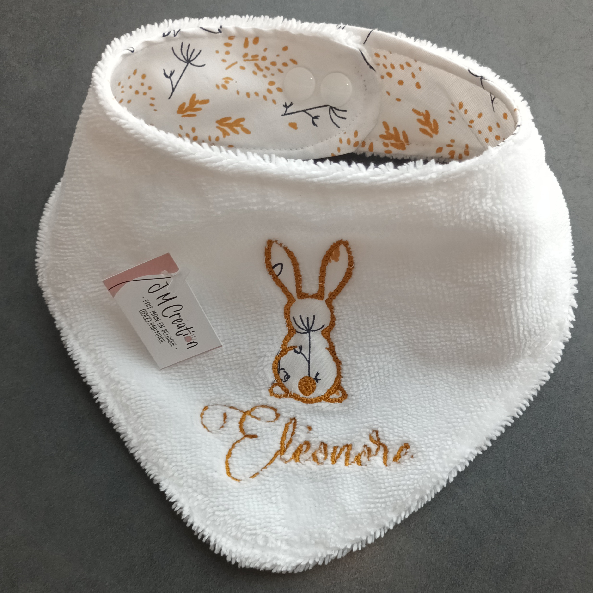 Le choix des tissus se fait directement dans l’album des tissus en stock, afin de créer un bavoir qui vous ressemble et accompagne bébé au quotidien.