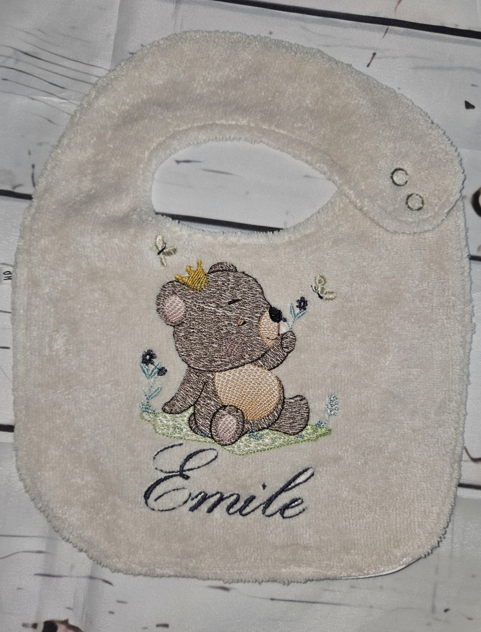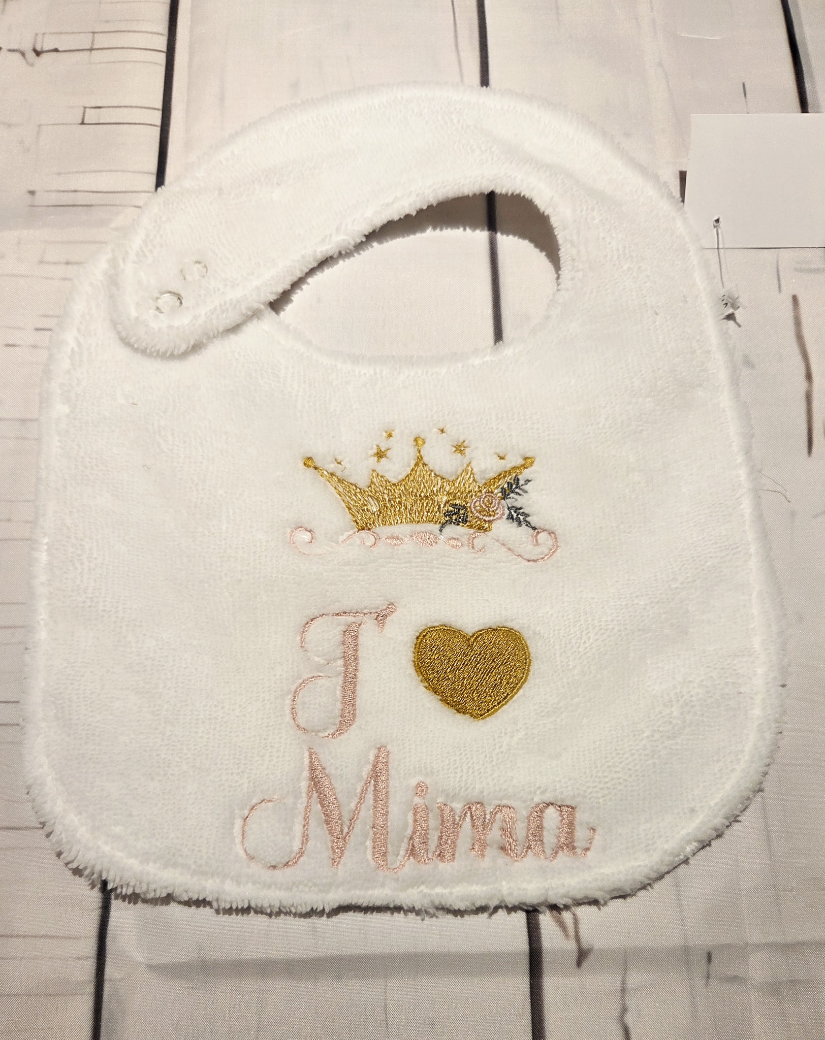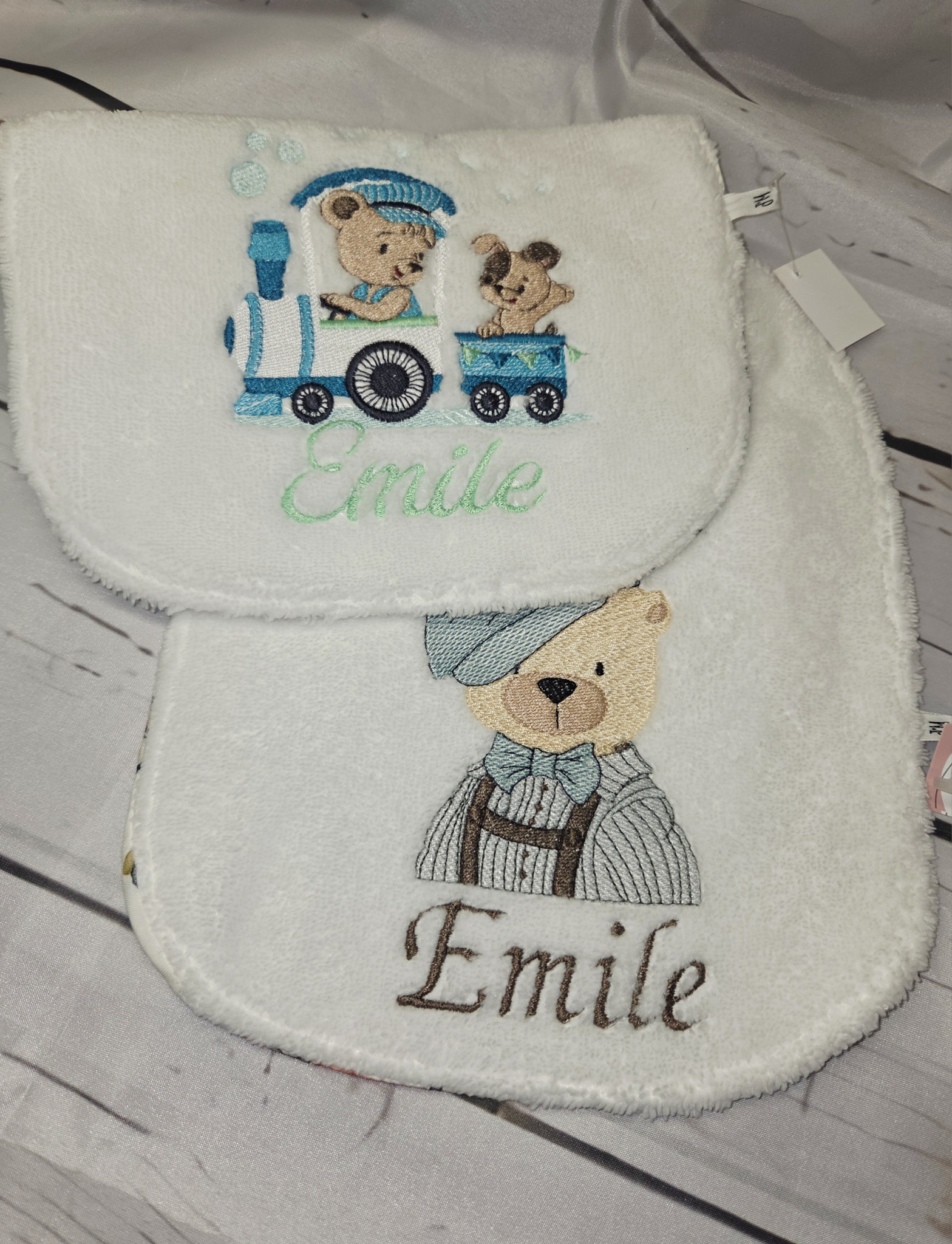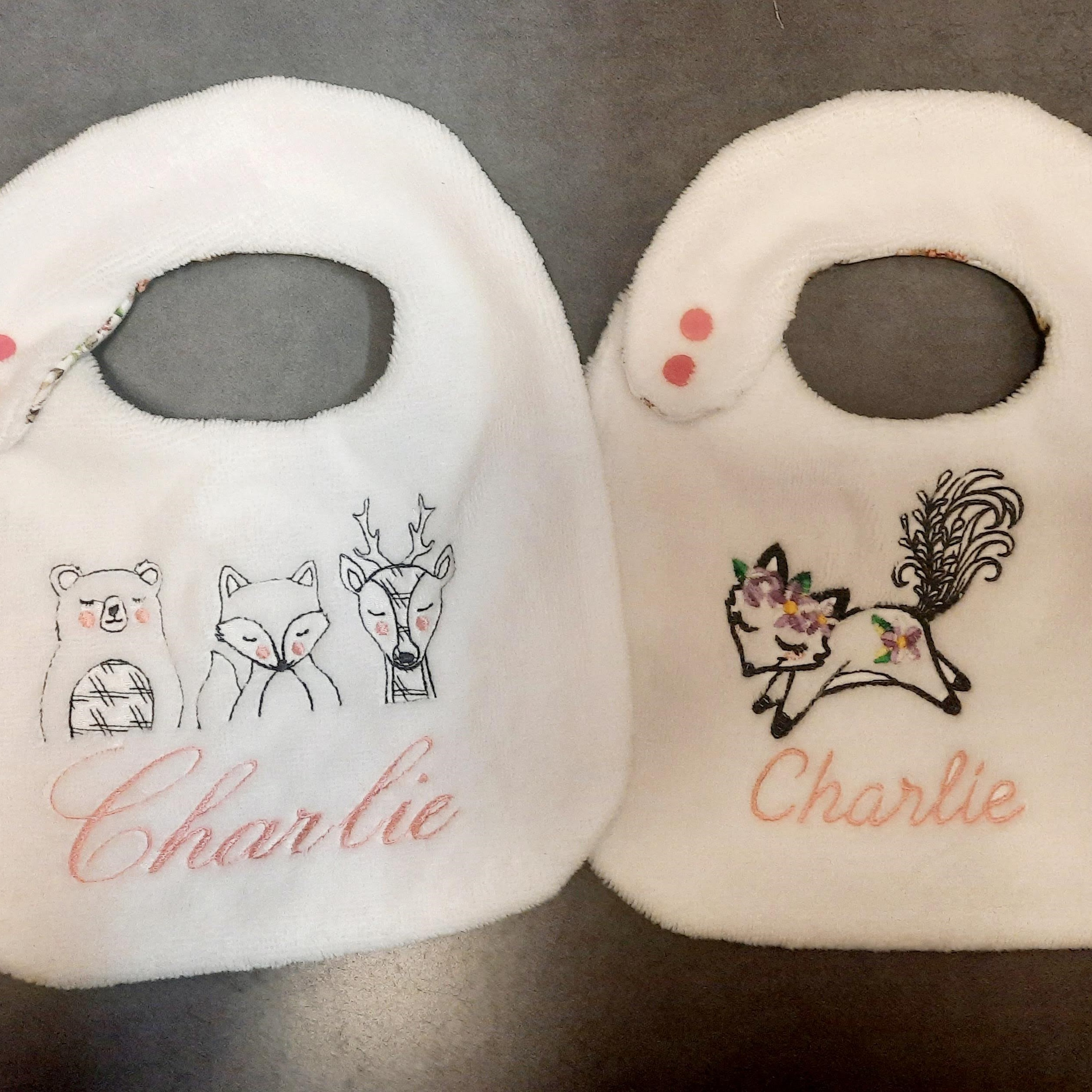 Le choix des tissus se fait directement dans l’album des tissus en stock, afin de créer un bavoir qui vous ressemble et accompagne bébé au quotidien.
