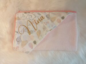 Chaque cape de bain est entièrement réalisée à la main et peut être personnalisée selon vos envies :