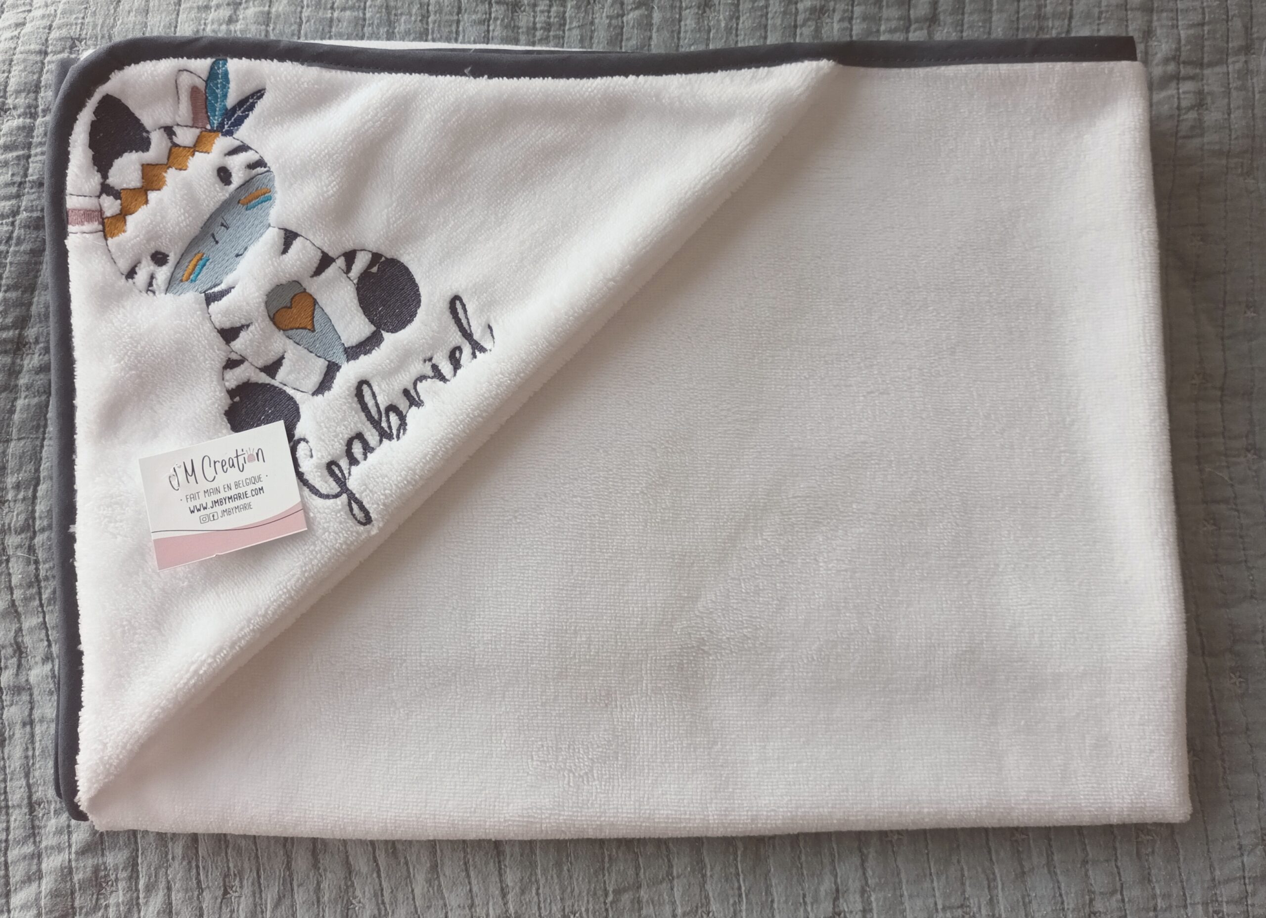 Pensées pour les moments de douceur après le bain, les capes de bain JM Création mesurent 90 × 90 cm, une taille généreuse idéale pour essuyer bébé délicatement et l’envelopper dans un véritable cocon de confort.