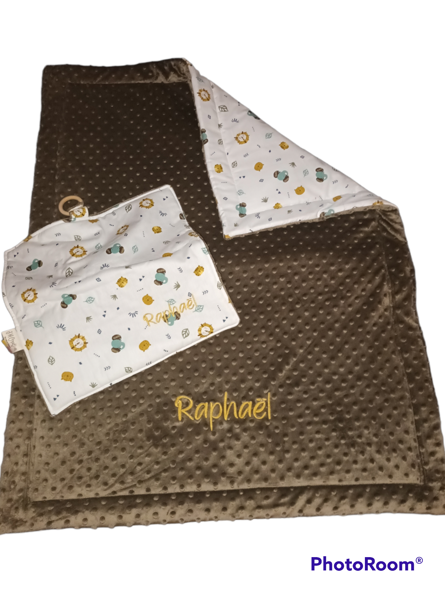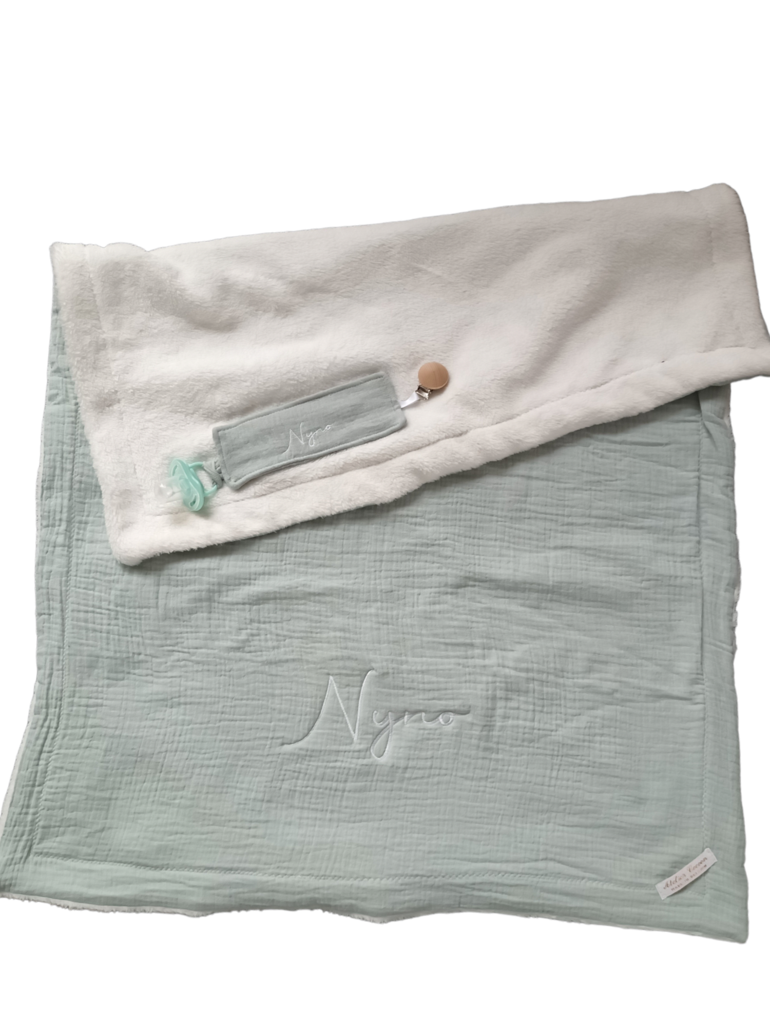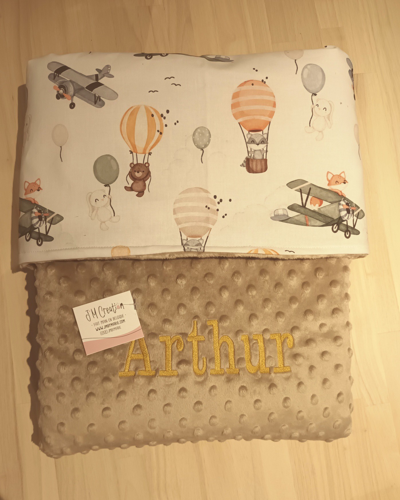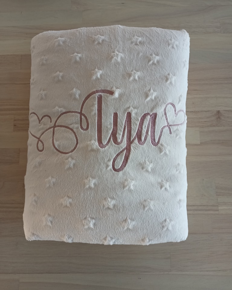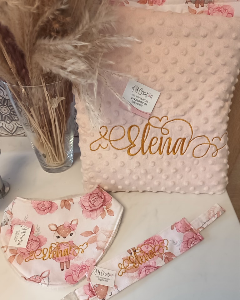 Chaque couverture peut être personnalisée avec une broderie, un prénom et/ou un dessin, pour créer un article unique, chargé d’émotion. Une création durable, faite avec soin, pensée pour suivre bébé au fil des moments importants de sa journée.
